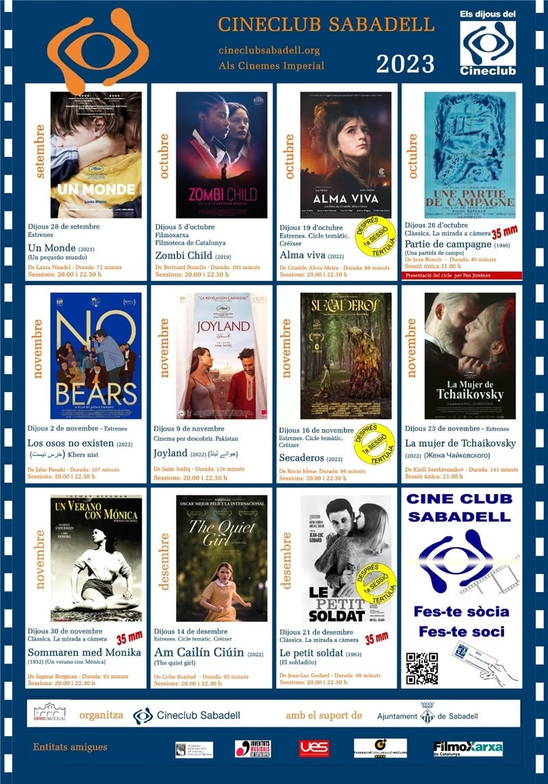 D’altra banda, els amants del cinema clàssic també tindran el seu lloc amb tres produccions històriques: Une partie de campagne (1946), Sommaren med Monika (1952) i Le petit soldat (1962). Cal mencionar que l’aposta pel cinema d’autor es veu accentuada aquest trimestre pel fet que les onze pel·lícules han estat escrites per la mateixa persona que les ha dirigit. “Per a nosaltres això és molt important, perquè l’obra final acaba tenint un caràcter molt més propi”, apunta Badia.