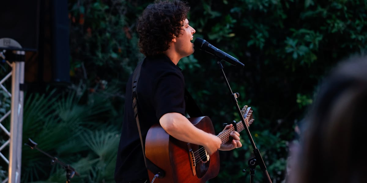 Roger Padrós ha sortit a l’escenari dels Jardinets encantat de tornar a Sabadell, el lloc que el va veure néixer. El piano i ell, ell i el piano, formen una simbiosi inseparable. Sense oblidar els tres músics que l’acompanyen, el Ferran Alemany a la bateria, i el Jan Aygua i el Marc Furnance a les guitarres. És un no parar des del principi, des dels primers compassos de Digue’m, pertanyent al seu àlbum La vida és millor, del 2022. Música enèrgica, vigorosa, potser un pèl forta en alguns moments, però així i tot, apassionada, temperamental. I unes lletres que ho adornen tot, que ho embolcallen amb una veu tímida, a vegades esquinçada, i que parlen de les petites coses de la vida.