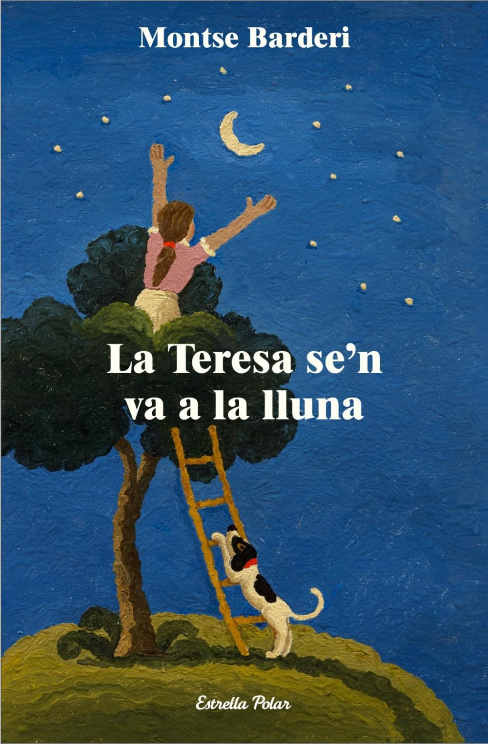 “El quadre representa la Teresa pujada a un arbre que s’eleva del terra i per tant ja està a mig camí de la lluna amb els braços oberts. Hi ha un gosset, que també participa de la il·lusió de la Teresa. Un cel estrellat. Una nit. L’escala. Un imaginari molt meu”, assegura l’artista.