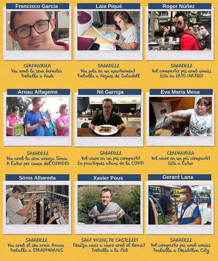 En la imatge superior us presentem alguns membres dels autogestors d’Andi. La majoria treballen o tenen contractes en pràctiques en empreses que col·laboren amb la nostra entitat, i d’altres s’estan formant per aconseguir aquest objectiu amb els nostres programes d’inserció laboral. La Laia, l’Arnau i la Sònia ja han fet realitat el seu somni de viure sols, en parella o amb amics, i gairebé tota la resta està a l’espera de seguir les seves passes. Perquè ho desitgen. Perquè poden fer-ho. Perquè són singulars, com tothom.