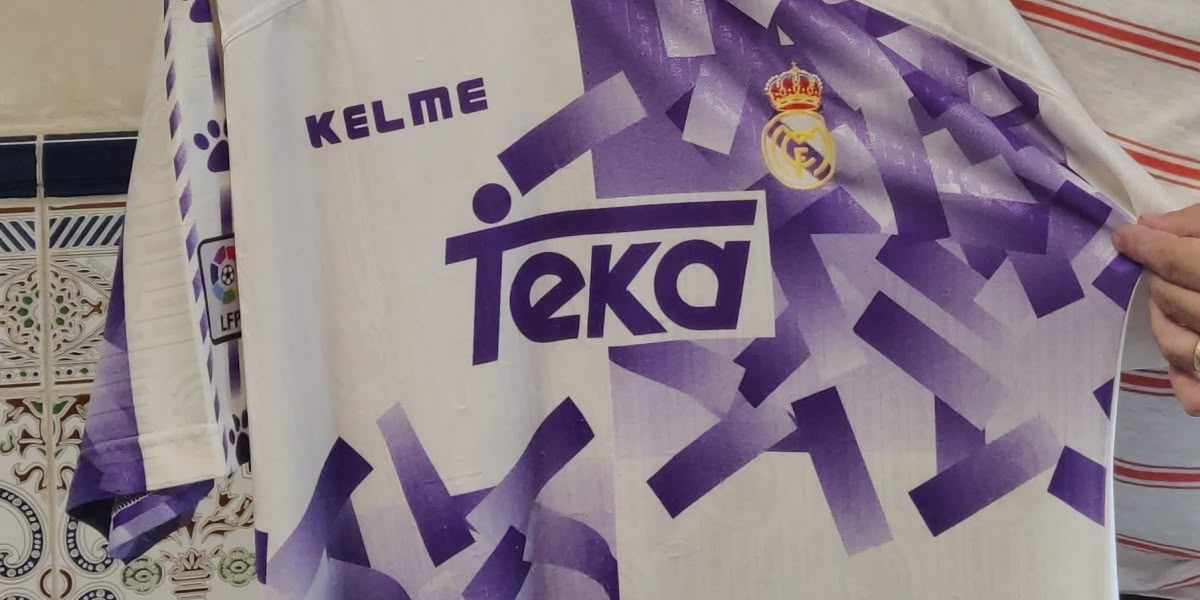 La del Barça és de l’any 2017 i és un arlequinat peculiar. La del Real Madrid va ser de la temporada 1996-97. La primera en què els jugadors tenien el nom darrere. Va ser una tercera equipació i només la van fer servir oficialment en un partit contra l’Elx.