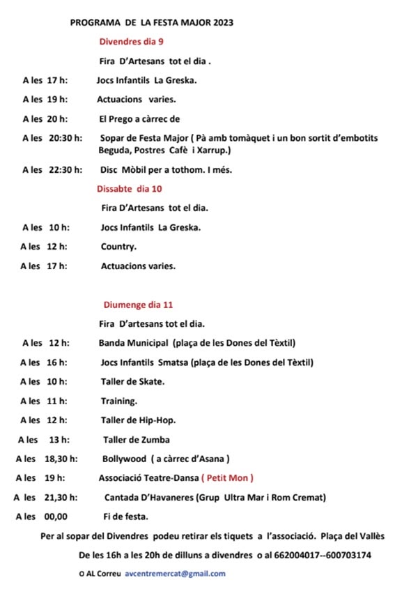 Si voleu veure tot el programa el teniu inserit a dalt. Si no el podeu veure, podeu fer-ho clicant aquí: ‘Programa de la Festa Major de Ca n’Oriac‘.