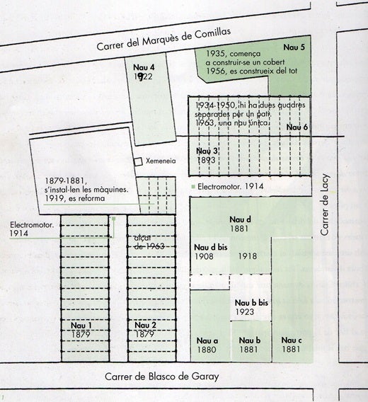 Tret de les dues naus esmentades que foren restaurades, la resta del vapor fou enderrocat per a construir pisos.