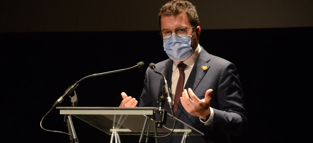 Foto portada: intervenció de Pere Aragonès, al Teatre Principal. Autor: David B.