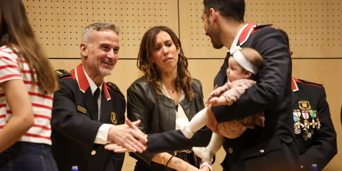 Durant l’acte s’han entregat 40 diplomes i distincions a agents de la policia per mèrits contrets en el marc de la seva activitat professional. També a empreses, entitats, ciutadans o l’alcaldessa de Sabadell, qui ha rebut una figura commemorativa. Molts dels agents han estat acompanyats pels seus fills, aprofitant el dia de festa a les escoles.