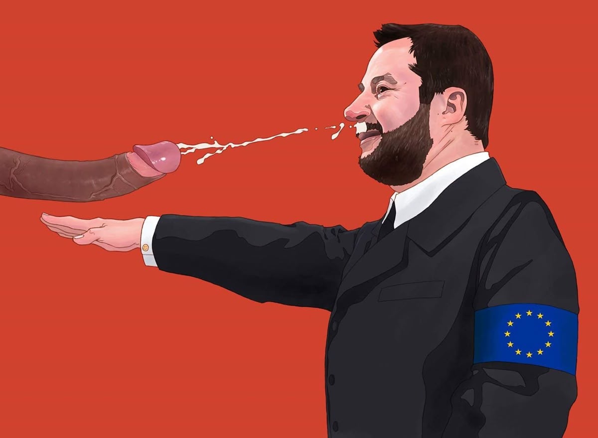 Un sabadellenc ha protagonitzat un escàndol en les darreres setmanes a Itàlia, que ha passat bastant desapercebut a Catalunya, més o menys a la vegada que es debatia sobre el gag de la verge del Rocío a TV3. Sempre amb els límits de la llibertat d’expressió i creativa en el debat. Es tracta de l’il·lustrador Luis Quiles, qui va presentar a Torí un disseny amb l’ultra Matteo Salvini braç en alt. Però a la mateixa vegada rebia l’ejaculació, directa al bigoti, d’un gran penis negre com un símbol de protesta cap a les lleis migratòries europees.