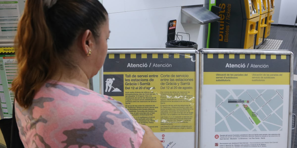 Els trens entre Gràcia i Plaça Catalunya modifiquen els horaris habituals i circulen amb una freqüència màxima de 18 trens per hora i sentit. Un canvi que han notat alguns usuaris. “Van més lents del que és usual”, comentava una persona en sortir de l’estació. La previsió és que es torni a restablir el servei habitual el 21 d’agost.