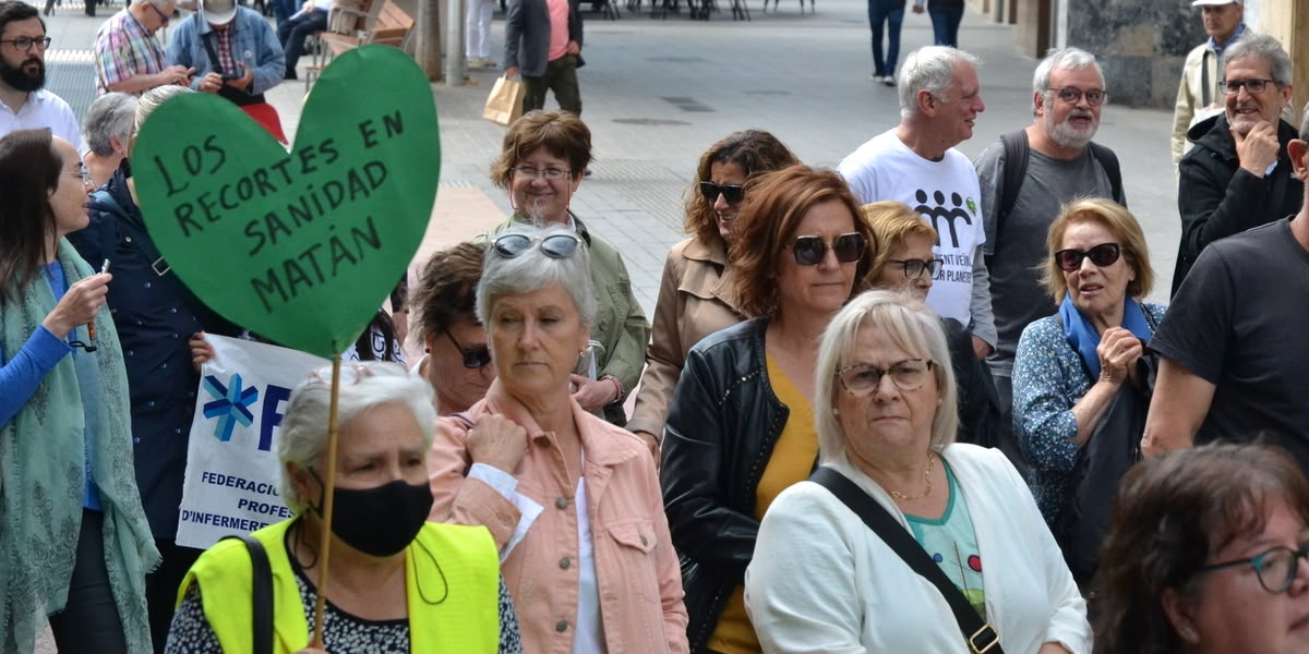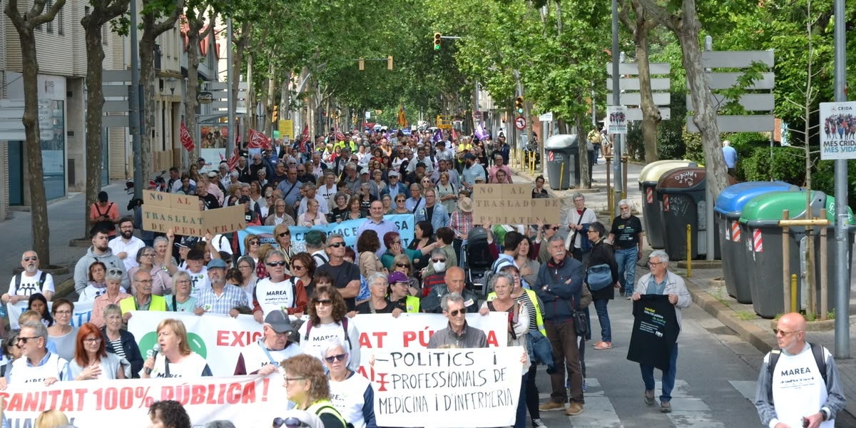 Més d’un miler de persones s’han manifestat aquest dissabte pels carrers de Sabadell per reclamar millores urgents en la sanitat pública. Des de les onze del matí, una llarga llista de més de cinquanta associacions i entitats de tot el Vallès s’han reunit a la ciutat per fer un clam conjunt per demanar més inversió en l’atenció sanitària i oposar-se a la privatització dels serveis. “La situació és crítica i la urgència i la necessitat ens obliguen a posar una marxa més en la nostra lluita quotidiana”, ha dit Antonio Barbará, metge i fundador de Marea Blanca.