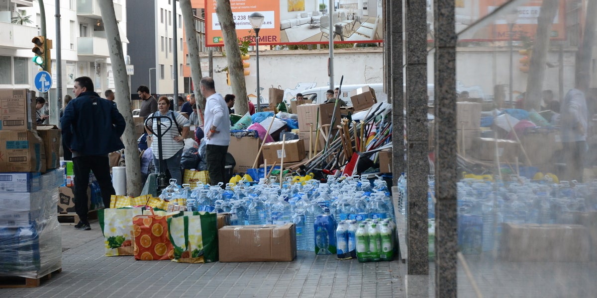 Uns metres més enllà està col·laborant amb els voluntaris en Benjamín Yuste. Ens sorprèn explicant-nos que és veí de Paiporta, un dels pobles més colpejats per la DANA, però que el temporal li ha agafat passant uns dies a Catalunya, a gairebé 400 quilòmetres de casa. Afortunadament, la seva família es troba bé i ha decidit sumar-se a les iniciatives populars fins que pugui tornar amb ells en uns dies.