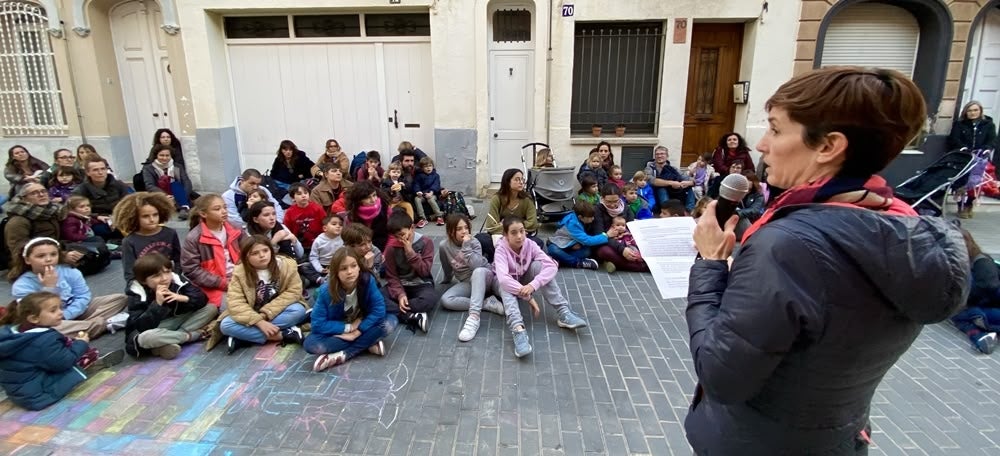 Protesta per la retirada del mobiliari urbà davant l’escola Enric Casassas