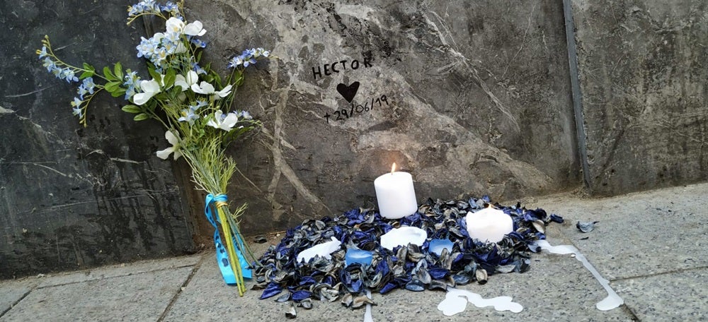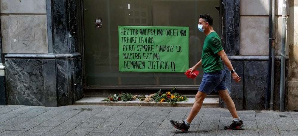 Espelmes i flors per l’Héctor, víctima del crim del carrer Gràcia